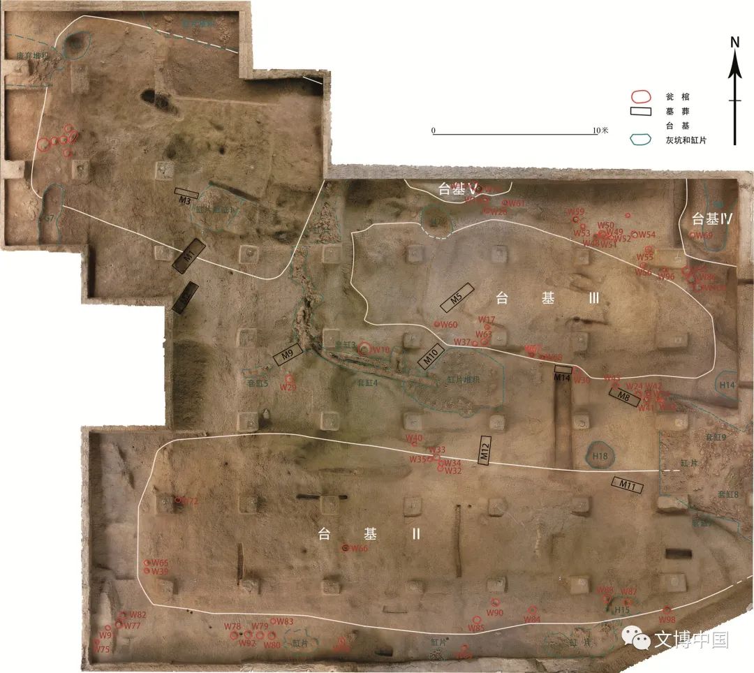 谭家岭遗址东部高地揭示的后石家河文化时期随葬玉器的瓮棺葬、石家河文化晚期面积达144平方米的大型建筑台基残迹以及屈家岭文化早期的土坑墓地,初步反映出该区域聚落格局的变化状况。