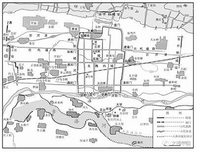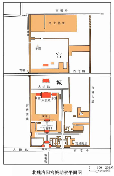 北魏洛阳宫城勘察平面示意图(上北下南)