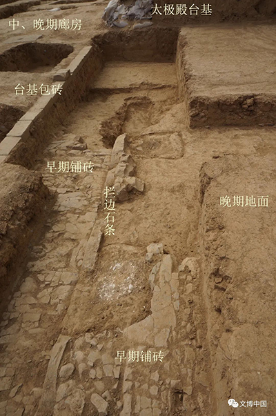 据发掘解剖,太极殿建筑群的建筑时代主要为三个时期,其主体建筑始建于曹魏时期,北魏重修沿用,北周时期改建未成。在殿基内解剖发现的早期大规模夯土,殿基北面的早期大面积铺砖地面、拦边条石、大型础石等遗迹,规模体量大,建筑规格高,显然与文献记载的曹魏明帝“大治洛阳宫,起昭阳、太极诸殿”有关。