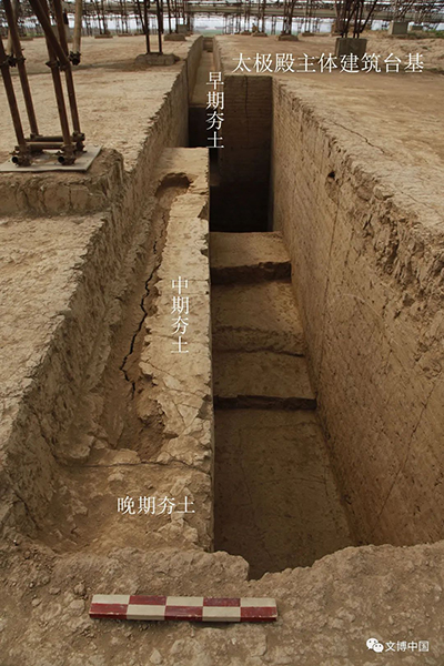 太极殿主殿台基解剖夯土遗迹(由北向南拍)