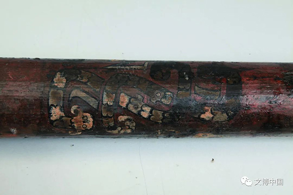 圆柱形蟠虺纹建鼓杆局部(M1椁室北部出土)