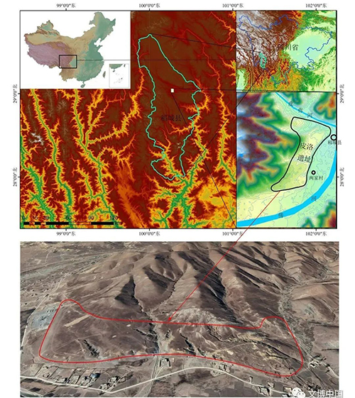 皮洛遗址位于四川省甘孜藏族自治州稻城县,平均海拔超过3750米,地处金沙江二级支流傍河的三级阶地上。遗址南北长约2000米,东西宽约500米,总面积约100万平方米。