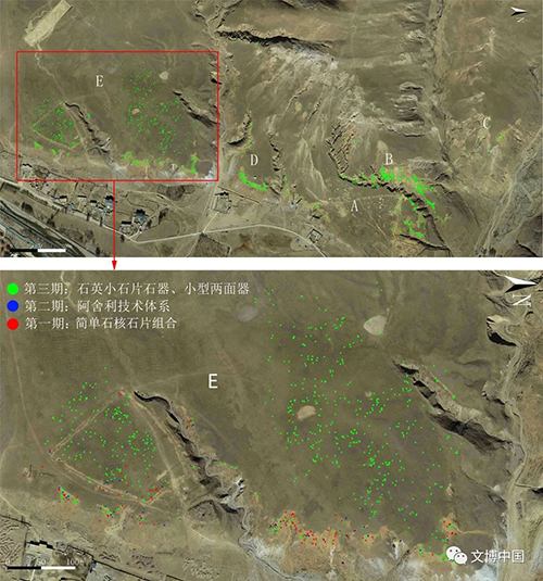 遗址建立了科学的地表采集系统,详细记录地表所有典型石制品的类型、风化磨蚀情况和三维坐标,极大地填补了发掘面积有限的不足,系统地还原了整个遗址范围内不同时期遗物的空间分布状况,目前已采集典型石制品3000余件。