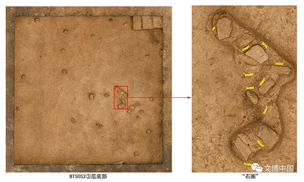 皮洛遗址3个阶段均发现有石制品及人工搬运砾石密集分布的古人类居住活动面。初步整理表明,石制品中约有20%为“烧石”,可能与较为频繁的用火行为有关;⑤、⑥层发现石器拼合组;在③层还发现有扁平砾石围成的半环状“石圈”遗迹,显示人类曾在遗址从事过用火、打制石器等活动。