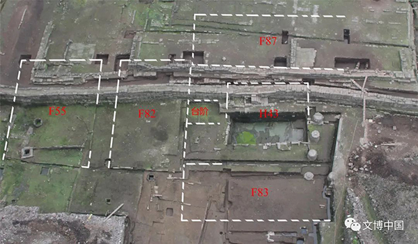 Ⅱ区的重要发现为西部的F82、F55、H43、F83及F87组成的建筑群。该组建筑规模较大,布局规整,通过石板道路、台阶等互相联系,且共用水沟、水池等给排水设施。根据出土的较多佛像及香炉器足等遗物分析,其性质功能当与宗教有一定关系。Ⅱ区北部的重要发现有一处三合院式建筑基址F72,布局结构完整,榫卯结构的木地栿保存较好。