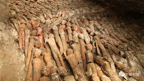 ▲江村大墓外藏坑出土着衣陶俑