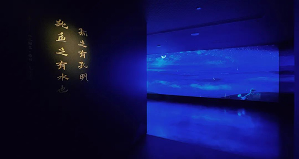 多媒体展项多维地展示刘备与诸葛亮相遇相知相逢于乱世的旷世人生,充分展现艺术文化感染力,调动观众视觉、触觉、听觉和嗅觉,利用多感官感知为观众提供更加有效传达展览信息的方式。其中尾厅“星落五丈原”沉浸式展项中,远方山峦叠嶂,空中风声戚戚,星光黯淡,诸葛亮在座椅上遥望北方,不知是否为无法实现兴复汉室、还于旧都的愿望而遗憾,留下一个让人感叹良久的背影。随着时光的流逝,刘备与诸葛亮这一对明君良臣都已成为历史,他们曾共叙经纬,他们曾挥剑指北,他们曾山水跋涉,最后长揖作别......