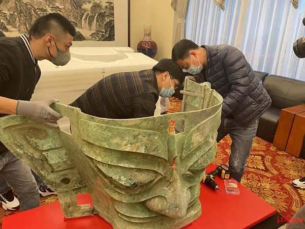 “6个祭祀坑出土大量珍贵文物,其中3号坑、4号坑的文物已经提取完成,3000多件计划入驻正在建设的三星堆博物馆新馆。”余健告诉记者,需要修复的文物数量众多,时间紧张,再加上出土文物修复难度高,对余健和他的团队是个很大的考验。“比如在2022年央视春晚惊艳亮相的青铜大面具,在修复中遇到的最大困难就是存在严重变形甚至残缺现象,就需要我们通过非常谨慎的传统修复工艺来进行修复。”余健举例说,这也是青铜类出土文物修复的共同难点,对青铜器进行矫形,如果不考虑它们的受力情况,可能造成新的开裂,为了避免对文物造成二次伤害,需要根据文物的独特性去分重点进行处理,所以说文物保护修复是一个长期过程。