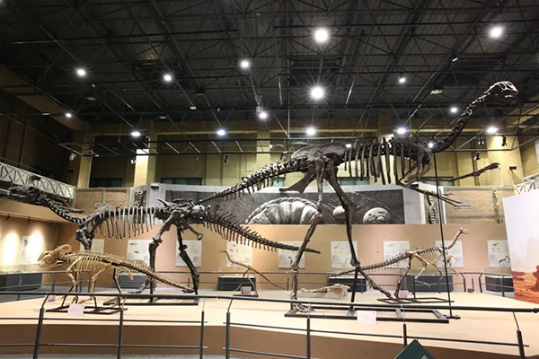 本次展出了多件恐龙骨架模型,如:目前已知体型最大的盗蛋龙类恐龙——二连巨盗龙;来自巴音戈壁组的完美巴彦淖尔龙,为我们了解禽龙类的早期演化提供了全新的视角。还有原地埋藏状态保存的且完整程度超过90%的董氏中国似鸟龙,以及体内保存了多枚胃石的戈壁鹦鹉嘴龙……