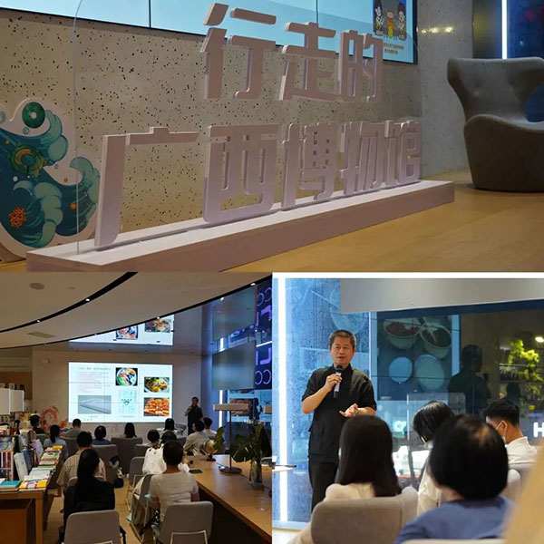 在当晚的“行走的广西博物馆”文化沙龙上,广西博物馆协会理事长吴伟峰用年轻化、平民化、具有生活感的方式为大家讲述广西文物的故事。在谈到博物馆+后备箱创意集市的这种形式时,他说,我们要实现博物馆创新发展,必须先了解人民群众的喜好和需求,然后用当代人喜欢的表达方式去传播博物馆产品和文化,与时俱进,才能让博物馆生机勃勃。