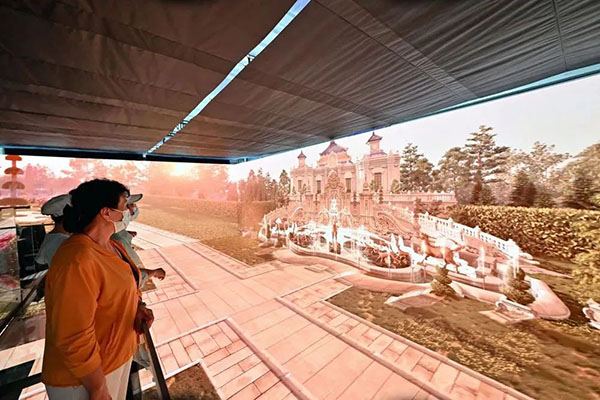 沉浸体验空间内欣赏数字技术模拟的圆明园景象(2022年9月5日摄)。新华社记者 李鑫 /摄