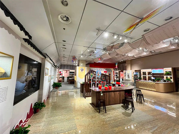 山东老字号暨非遗文化体验馆设在山东博物馆一楼大厅北侧,充分展示出传统文化教育、技艺传习、研学旅游等多项功能,包括以技艺传习为主要内容的风筝、琉璃、鲁绣、和香、中药香囊、掐丝珐琅、木版年画、陶瓷拉坯等十余项手工制作体验项目,以博物馆藏品与非遗技艺相结合衍生的文创产品为载体打造“山东手造”新业态。