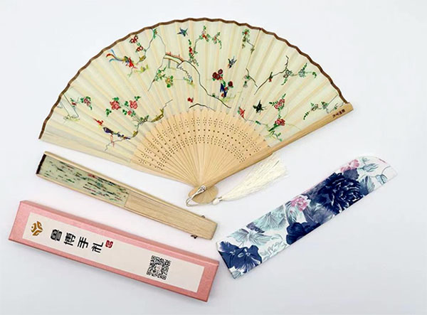 这把依托“衣冠大成——明代服饰文化展”网红展品“白色暗花纱绣花鸟纹裙”设计的丝绸雅扇,绣花纹样均真实还原丝绣山石、小桥流水、牡丹、石榴花、菊花等纹饰,整体素雅宁静,古朴大方,极富中国风,扇骨经过纳米打磨工艺处理,开合也更加顺畅。每把折扇均配礼品扇盒、丝绸扇套、丝光线流苏扇穗,从包装到内容都极为考究。