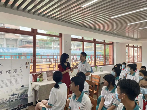 在“园·说”研学课程中,馆方老师带领同学们创造性地将历史学与建筑学相结合,介绍江南园林、岭南园林等造园艺术的差异与特点、布局的建造,让学生通过动手设计制作园林沙盘,锻炼规划设计能力、团队协作能力及动手能力,为个人学习规划、人生规划提供思考。目前,“园·说”课程已送到广州市白云中学、广州市第七中学、广州市第二中学和广州市执信中学等。