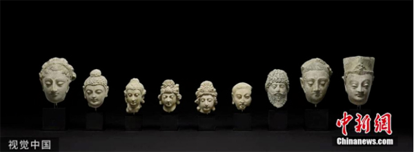 图为大英博物馆正式归还从阿富汗走私的一批佛头文物。