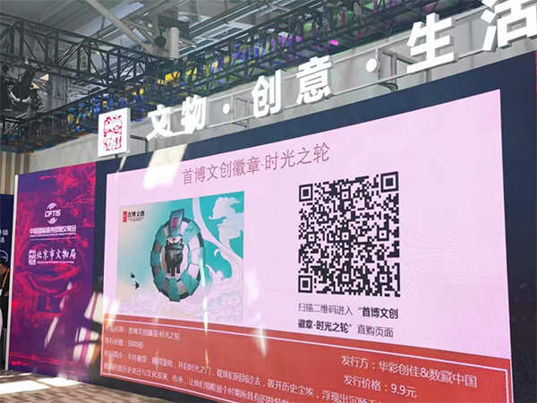 展会首日,依托区块链技术,首都博物馆在展区现场首发推出了“首博文创纪念票”和“首博文创徽章——时光之轮”两项数字文创产品,均为独一无二的珍藏之选。其中限量5000份的文创徽章一经发售即在1分钟内销售一空,点燃了传统文化在数字领域的“收藏热”。