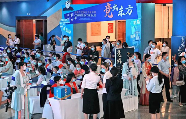展览由序篇竞之源以及竞之礼、竞之武、竞之戏、竞之力、竞之艺等五个单元构成,主要展示了中国射礼、御术、射艺、狩猎、武艺、导引、行气、蹴鞠、马球、捶丸、棋弈(六博、围棋、象棋)、百戏、角抵、婴戏、竞渡、垂钓、冰嬉古代等众多古代体育项目,较为全面展示了中华体育悠久辉煌的历史和文化。开展以后,馆方还举办了多场“线上+线下”的宣传、教育和体验活动,推动体育文化进校园、进社区,全面展示中国优秀传统体育文化的魅力和内涵。