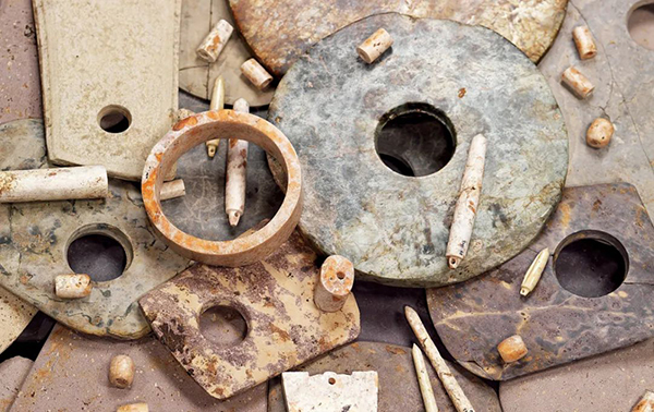浙江良渚遗址群文家山墓葬中布满玉器。图/浙江省文物考古研究所