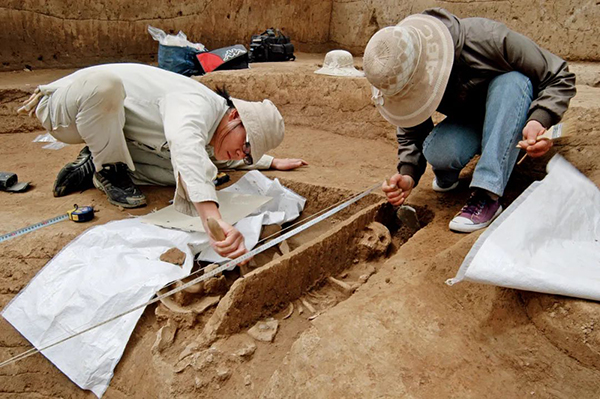 2010年,河南二里头遗址考古人员为墓葬绘图。图/社科院考古所二里头考古队