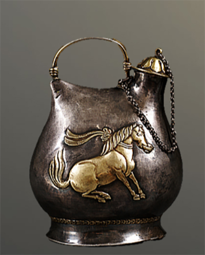 天宝十四载,发生了历史性的转折。安史之乱爆发后,盛行一时的舞马衔杯宫廷祝寿舞的形式在历史的变革中永远的销声匿迹了,但这件银壶却成为大唐王朝的兴衰最好的见证。