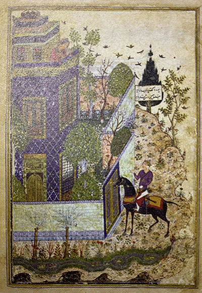 伊儿汗国衰亡之后,札剌亦儿王朝统治伊朗西部,当时的宫廷画家朱奈德创作了一幅取材于波斯文学的细密画《霍迈与胡马云》。霍迈是一位波斯王子,梦中遇见了中国公主胡马云。霍迈爱上了梦中的胡马云,万里迢迢来到中国,见到了胡马云,并在经受了各种考验之后抱得美人回波斯。这幅《霍迈与胡马云》的细密画不但在内容上受中国文化影响,鸟兽、树木和岩石也借鉴了中国绘画的风格。