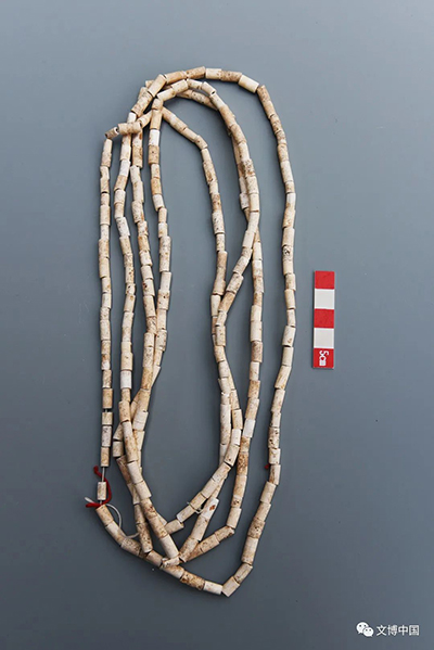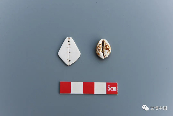 第一期基本属于魏营子文化范畴,只发现少量灰坑,出土陶器以夹砂绳纹灰褐陶为主,素面者约占三分之一,典型陶器为绳纹花边鬲。另还发现仿海贝的石贝,用白色石片磨制而成,菱形薄片状,长2.5、宽2、厚0.2厘米,正面刻划仿贝齿的短细线,顶端及底端各一穿孔。
