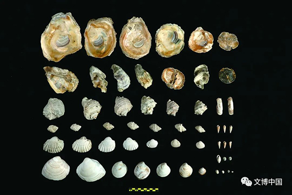 第二大类,人工利用后废弃的动植物遗存。动物遗存中最多的是海生贝壳,种类有蚶、牡蛎、海螺、蛤、蛏等5大类,其次是各类渔猎动物骨骸,以鹿科动物骨头为主,也有一些猪、狗、牛的骨头,以及海鱼的脊椎骨、牙齿、耳石、蟹螯等;植物遗存中最多的是废木材和储藏坑中的麻栎果、橡子,以及果壳、桃核、松果、炭化米等。