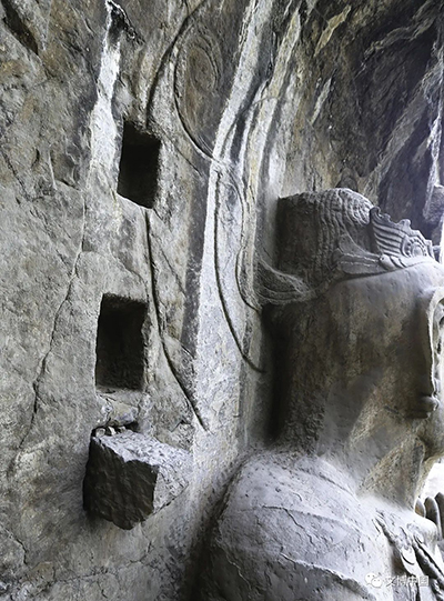 大像龛壁面上的建筑遗迹