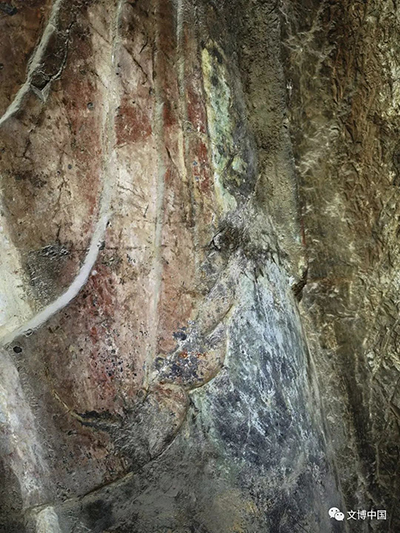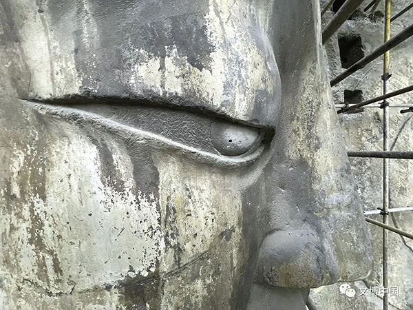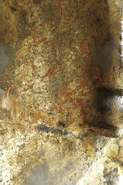雕像表面残存的彩绘痕迹
