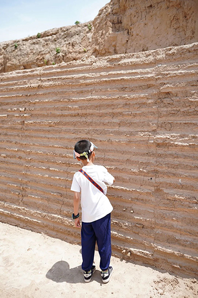 一是田野考察感悟原真情景。秦都咸阳城遗址现存面积约100平方公里,其中一号宫殿遗址经考古发掘证实,东西长177米、南北宽45米、现存高度11米余。集多种使用功能为一体,合理解决了通风、采光和排水等问题,被誉为中国古代高台建筑巅峰之作。这座建筑到底是不是荆轲刺秦的发生地实际并不重要,高大的夯土台基保存到现在已经为想象咸阳宫殿宏伟气势提供了意境,为捕捉秦王将相步履匆匆的身影提供了想象空间。带着“天下康宁”的愿景登顶驻足,所得意境之“虚”再加上找柱石、陶水管,烧土块等活动之“实”,土遗址活化后的原真感更加丰满。