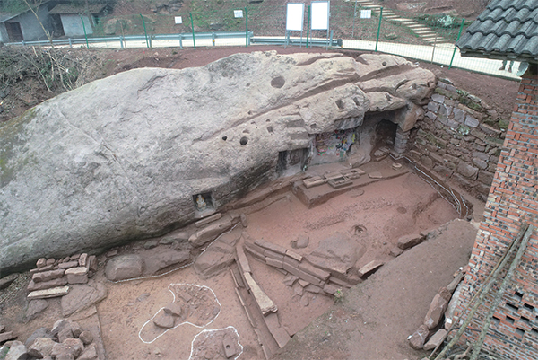 在聚落考古理念指引下,我们开展了多处石窟寺的考古发掘,江津石佛寺遗址实证了开展石窟聚落形态考古的必要性。该遗址除发现大量的石刻造像外,厘清了功能分区、布局和沿革,它由建筑基址区、石上建筑遗迹区、摩崖造像区、墓葬区及放生园区组成;揭露了数座规模宏大的南宋殿阁遗迹,由前殿、后堂、配殿、龛前建筑、转轮藏、爬山廊、祖师塔(殿)等组成,是我国南方地区发现的保存最完整的宋代寺院遗址之一;认识了其独具特色的山地建筑规划设计思想及营造技术,巧借天然巨石,与寺院建筑规制相融合,创造出了一种独特的建筑形制;僧俗墓葬的发现,展示了僧人的丧葬习俗和埋葬形式,以及居士、信众与寺院在生前死后的依附关系;一批碑刻题记的发现,不仅在重构寺院沿革史中发挥了关键作用,而且还涉及寺院管理体系、度僧制度、寺院经济等,具有十分重要的史料价值。石佛寺为开展川渝地区同类型石窟寺发掘提供了重要参考和启示。