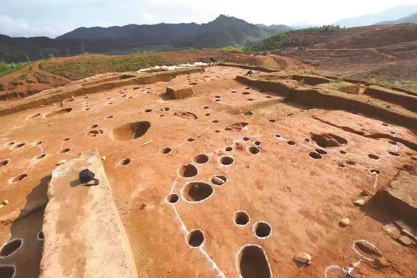 浦城龙头山遗址。龙头山遗址各时期地层及遗迹单位出土了大量硬陶、黑衣陶、夹砂陶、泥质陶及瓷片,以及金、银、铜、铁、玉、石、陶、瓷器等小件文物近200件(套)。遗迹主要有新石器时代晚期墓葬、商周时期的灰坑、房址与闽越国时期的墓葬。其中新石器时代墓葬均为长方形或近长方形竖穴土坑墓,出土器物有陶器和玉石器。陶器有豆、罐、壶、鬶、盉、杯、纺轮等,石器有镞、矛、锛、钺等,玉器有玉珠、玉管和玉锥形器等。其年代在距今4500年左右。龙头山遗址出土的各时期文化遗存,对于完善闽江上游新石器时代文化序列,探索闽浙早期文化交流,认识区内早期闽越族群文化,研究西汉时期闽越国葬制、葬俗,构建闽浙赣邻境山地河谷地带的历史文化发展脉络、生业经济系统、环境考古研究都具有极为重要的价值。