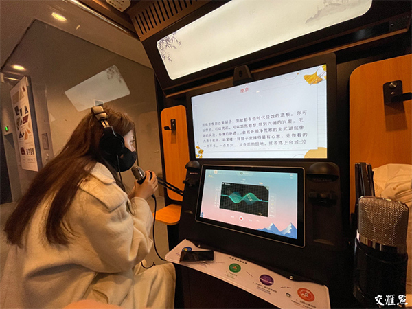 在博物馆的负一层,记者还发现了一个“新奇玩意”——朗诵亭。进入朗诵亭中,参观者可以选择接受来自南京城墙的“邀约”,说一说自己想对城墙说的话,谈一谈对南京城墙的感受,聊一聊自己与南京城墙之间的有趣故事。在屏幕上选择以后,便可戴上耳机进行录制,录制完成后的音频还能发布在南京城墙的官方账号上,与更多参观者进行互动。