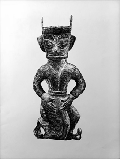 遗址出土的“铜扭头跪坐人像”,不论时整个人物造型,还是手和脚的动作姿态,不论是眼神和嘴角流露出来的内心的强大,还是头上那一柱极富力度的头发,以及夸张得恰到好处的一对手掌,无一不展示出一个男人的力量!