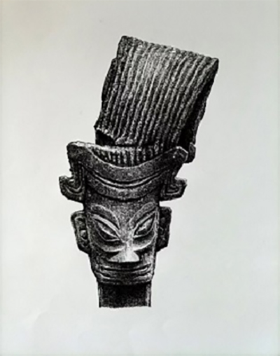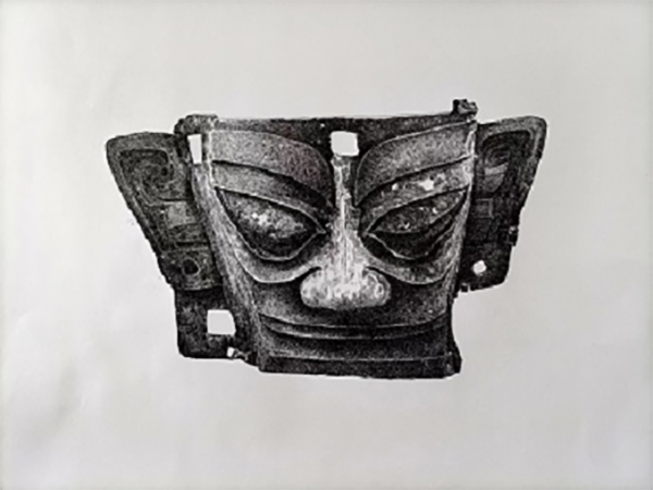 以铜人面具为首的青铜人物造型中,在强调面部线条、块面上,更注重与面部内部结构的吻合,几根简洁的线条,就将人物面部结构、骨骼精准而又富有艺术夸张地表现出来。这种于内在结构比较吻合的线条造型,在我国古代人物绘画中几乎没有。其制作之精美,结构之严谨,点线运用之准确,堪称青铜器人物中的艺术珍品。