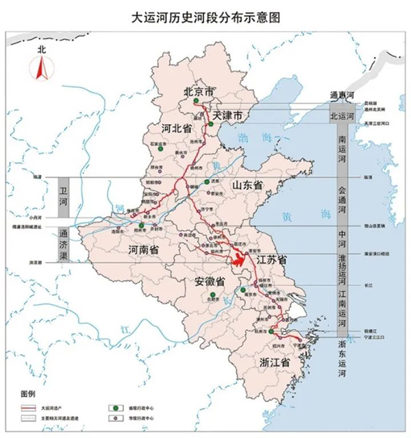 大运河流经六个省份,是构成海河、黄河、淮河、长江、钱塘江五大水系相连的水利大动脉。这条奔流千年的大河,涉及长江与黄河这两大中国古代文化、文明的核心地区,连接着夏文化、商文化、楚文化、燕文化、齐鲁文化等中国历史上重要的文化区域,是古代人类生活集中、文化遗址密集的地区。大运河不仅是一条河,它催生无数城市崛起,改善沿岸百姓生活,造就悠远民俗风情,是中国历史上南粮北运、商旅交通、军资调配、水利灌溉等用途的生命线,是一个涉及交通、水利、地理、历史、生态等诸多方面的文化长廊。
