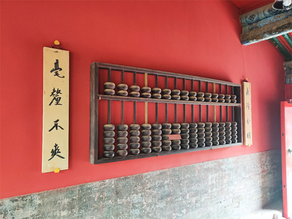 在瞻岱门东侧、西侧门,各挂着一副巨大的铁算盘,上刻“乘除分明”、“毫厘不爽”,为清代文物,也是东岳庙的镇庙之宝。民间传说,铁算盘代表七十六司判官对世人言行的量度,以便奖惩。