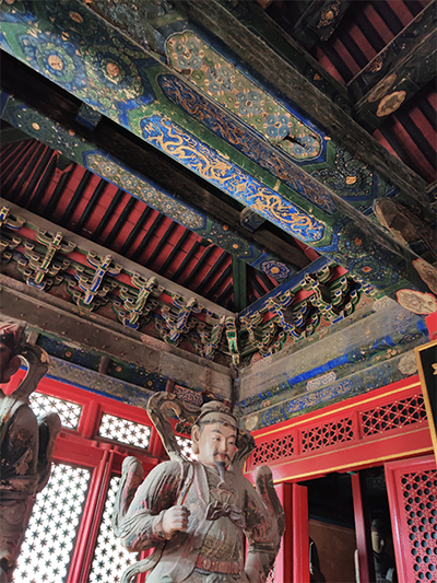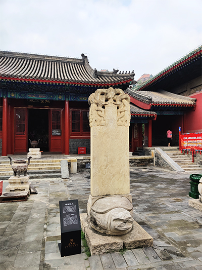 正院中央,就是主建筑岱岳殿,供奉着东岳大帝。大殿始建于元代,清康熙三十九年(1700年)重建,有面阔三间、单檐庑殿顶。