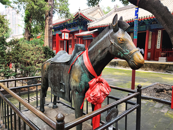 玉马,也是文昌帝君的坐骑,矗立在康熙御笔碑亭前,传说为康熙南巡时御马所化,因为驮过天子,寓意“官运亨通、马到成功”,不过不能用手摸。