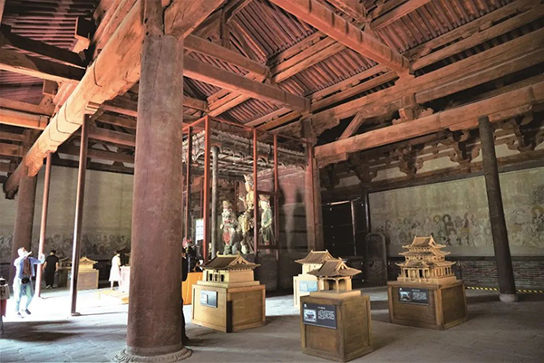 为了扩大祭祀空间,在古建筑中的主殿内减去大殿前部的柱子,一些内柱移开其本应所处的位置,使殿内的柱网发生变化,即减柱造、移柱造,在山西的辽、金、元建筑中最为常见。