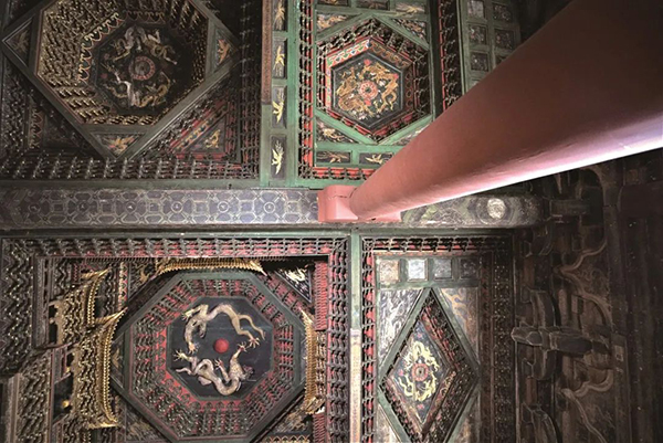 中国不少古建筑的天花板制作考究,有五彩斑斓的平棊、制作精巧的藻井、巧夺天工的天宫楼阁,是古建筑中的小木作精品,在天花板上构成了绚丽多彩的立体画面。