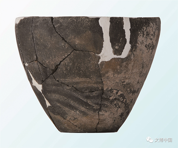陶器按质地可分夹砂陶和泥质陶两大类,夹砂陶数量最多,以夹砂黑褐陶和红褐色为主,泥质陶也占有很大比例,以泥质红陶和泥质灰陶为主。夹砂陶器的胎体多厚重,胎体内砂粒大小较均匀,由于烧制火候不均或使用造成器表颜色局部多呈黑褐色和红褐色。器体内壁面光滑,外壁面较粗糙有丰富纹饰,样式有之字纹、直线纹、复线勾连纹、凹点纹、弦纹和篦点纹、附加堆纹等,器底多为篮纹和席纹。夹砂陶器形以筒形罐为主,还有盆、碗、杯、器盖、板状器和塑件等。泥质陶器形主要为钵,有少量盆和器座,以素面为主,少量彩陶器,纹饰多为黑色平行线纹、平行斜线纹和勾连纹等,纹饰多在钵口沿和器座腹部。