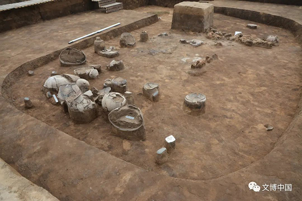 燎祭遗迹 数量较少,仅发现3处。均在祭祀区地表经长时间火烧而成的红烧土面遗迹,平面为圆形,直径约1.2米,其内堆积为红烧土块、草木灰和木炭,不出土任何遗物。