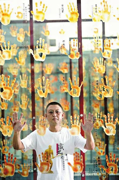 樊建川在抗战老兵手印广场