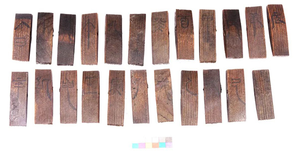 头厢内最为重要的发现为木牍,可分为干支木牌和遣策两类。干支木牌共23枚,其中1枚书写“令日”二字,余22枚皆单字书写十天干及十二地支;遣策共8枚,其中1枚内容为告地书,墨书题记“二年二月己未朔丙戌 涪陵盧敢告地下主/御史昌案掾地下狱疎书/所£及从者一人/可續食与从事/敢告主”。4枚则主要记录了随葬品的名称、数量及尺寸等,其余3枚无字。
