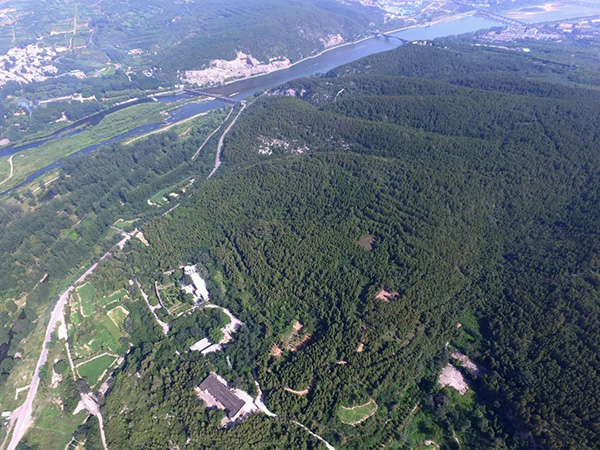 图一 鸟瞰东山南麓香山寺遗址(画面下方香山寺遗址鸟瞰)