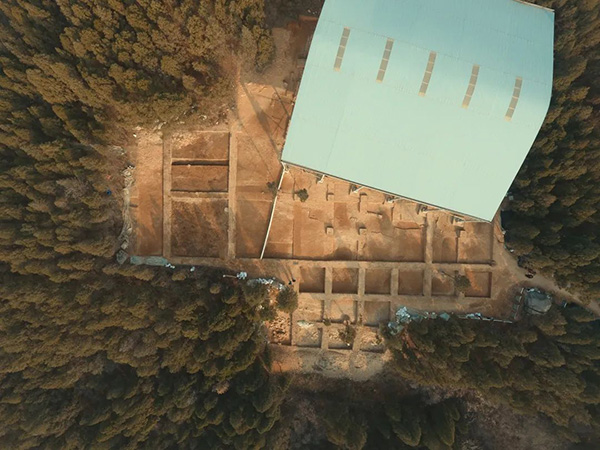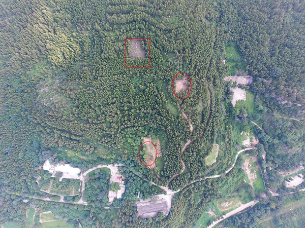 图二 2016-2021年,唐代香山寺遗址考古发掘点鸟瞰(照片中红圈处)