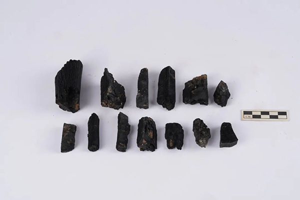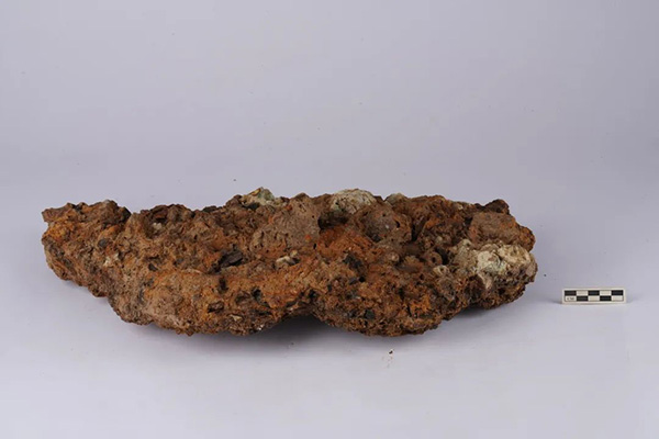矿石加工焙烧区,位于发掘区东部,呈片状分布。其表面可见大量的木炭灰烬,烧结明显,夹杂有大量紫红色粉末,经检测为赤铁矿粉末,应为冶炼过程中的矿石加工环节:即在冶炼前先对开采铁矿石进行筛选或粉碎,以便得到颗粒均匀的冶炼原料。垫土堆积分层明显,总厚度约0.8米,其年代与炼炉使用年代基本一致,贯穿于明代不同阶段的生铁冶炼活动。