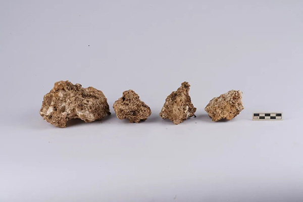 (二)基本厘清了小农场冶铁遗址生铁冶炼工艺流程,为研究重庆乃至西南地区生铁冶炼技术提供了重要资料。该遗址明显可分为生铁冶炼区、炼渣堆积区和矿石加工焙烧区,各区域间紧密相连,共同构成明代的生铁冶炼活动。遗址内矿石、木炭、炼渣、炉壁、石灰等众多冶炼遗物的出土,为揭示小农场冶铁遗址冶炼活动的相关技术细节,探论地区冶铁技术面貌奠定了基础。此外,遗址内六座高炉清晰地反映冶炼过程所使用的鼓风与排渣设计,特别是在鼓风口原位出土的石构件,是全国首次发现在冶炼过程中对鼓风管进行保护直接证据。