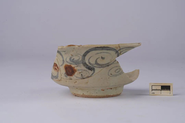 小农场冶铁遗址出土遗物众多,主要是与冶铁相关的炼渣、矿石、石质鼓风构件等冶炼遗物,同时还出土了较多的建筑构件和生活用瓷。建筑构件主要为板瓦、筒瓦、瓦当、滴水等。生活用瓷主要为南宋、明清时期常见的黑釉、白釉、青花瓷片,还有少量的仿钧瓷、青白瓷片等,器型主要有碗、盏、盘、罐、器盖等。